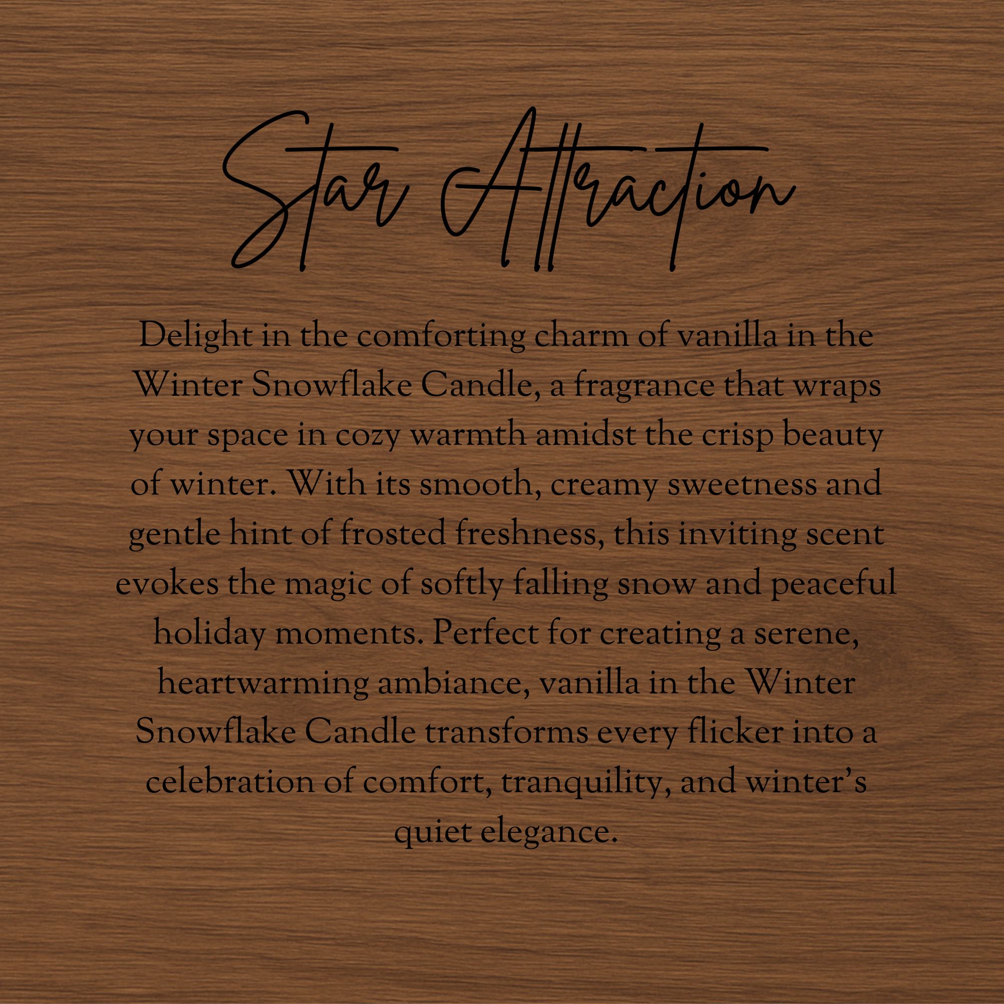 Warm up your winter with the Winter Flake Candle in Vanilla. A luxury soy wax candle that fills your home with sweet, comforting holiday fragrance.